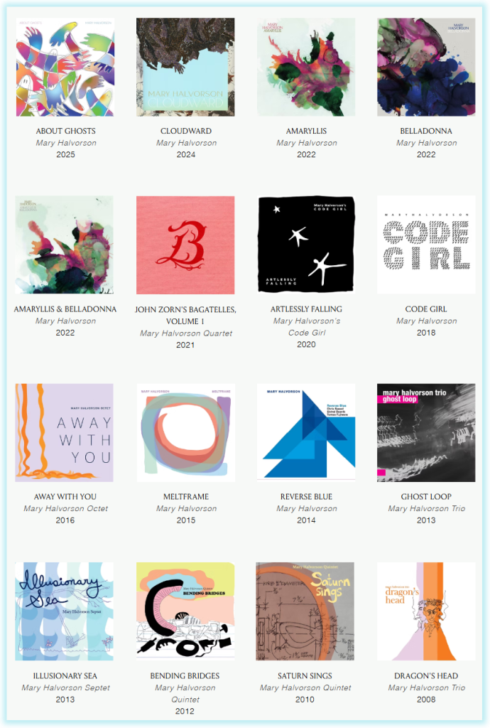 National Public Radio calls Halvorson “the most future-seeking guitarist working right now” and named her latest album, About Ghosts, one of the best albums of 2025. The New York Times describes her as “an unflinching original who has revealed new possibilities within the music.” She has been named in Downbeat’s “guitarist of the year” honors for multiple years and in 2019 was awarded a MacArthur Foundation “Genius Grant”. The critics who focus on the contemporary and experimental scene love her, too. Here’s just one of them, writing at The Free Jazz Collective: “Mary Halvorson is perhaps the most organic guitarist of my generation. Her music grows so logically and intricately yet twists and turns unexpectedly, spinning inward into knots before branching out into a glorious arbor that provides shelter to an impressive ecosystem of some of the finest musicians working today.”